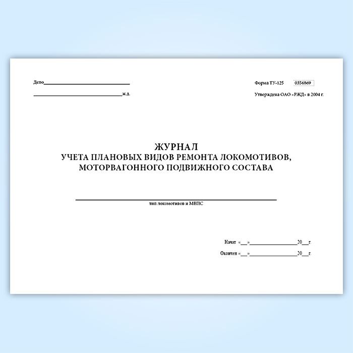 Книга учета плановых видов ремонта локомотивов, моторвагонного подвижного состава (форма ТУ-125) в Нижнекамске купить