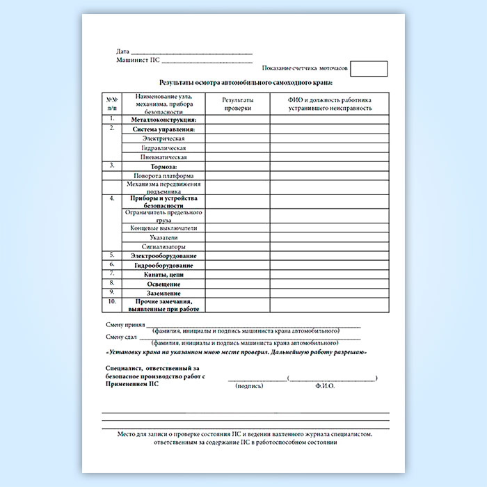 Вахтенный журнал машиниста автомобильного стрелового крана в Нижнекамске купить
