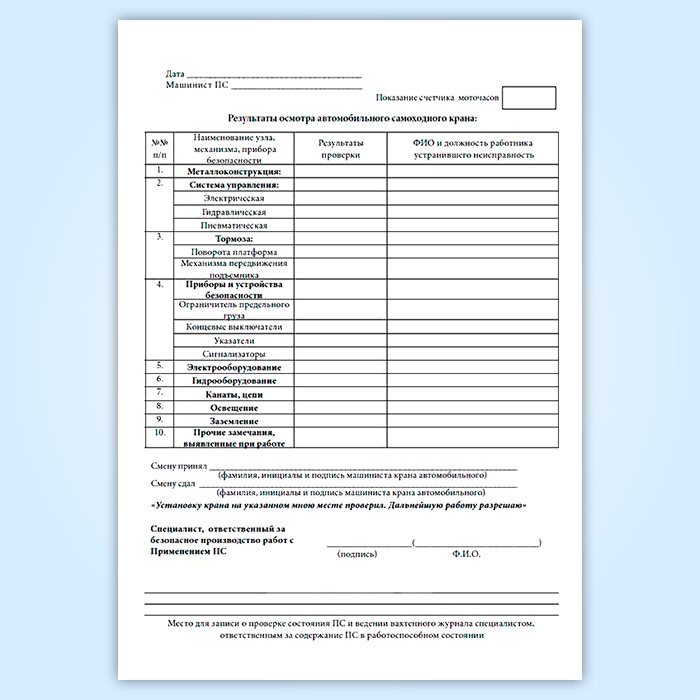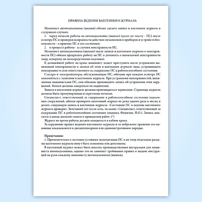 Вахтенный журнал машиниста автоподъемника (вышки) в Нижнекамске купить