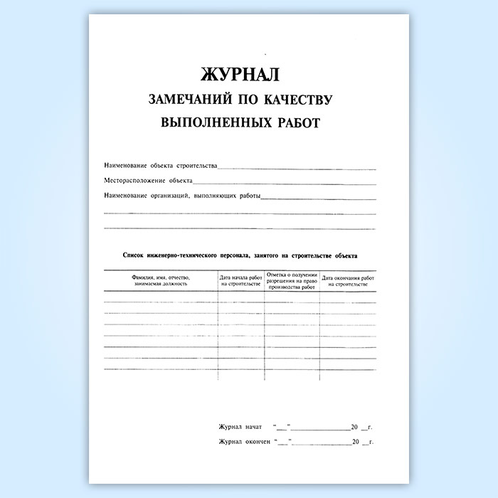 Журнал замечаний по качеству выполненных работ в Нижнекамске купить
