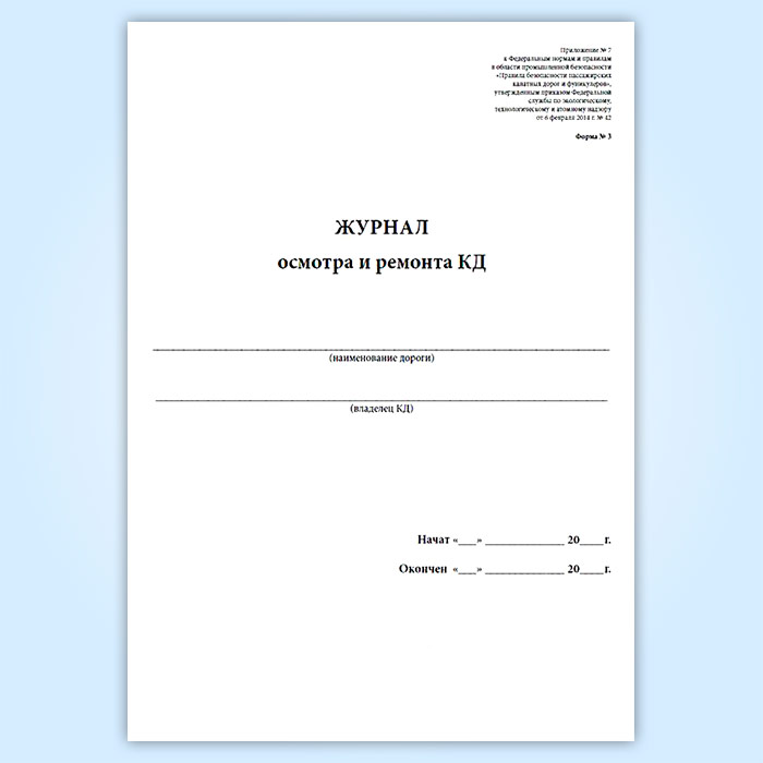Журнал осмотра и ремонта канатной дороги. Натяжной канат к несущему канату (форма № 3) в Нижнекамске купить