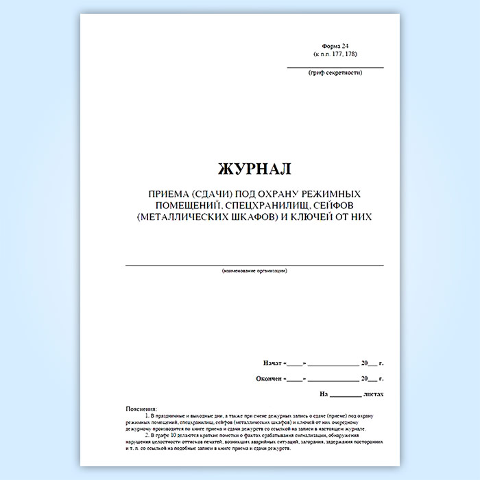 Журнал приема (сдачи) под охрану режимных помещений, спецхранилищ, сейфов (металлических шкафов) и ключей от них в Нижнекамске купить