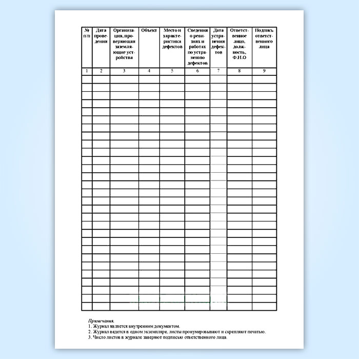 Журнал результатов ревизий устройств молниезащиты, проверочных испытаний заземляющих устройств (форма Б.30) в Нижнекамске купить
