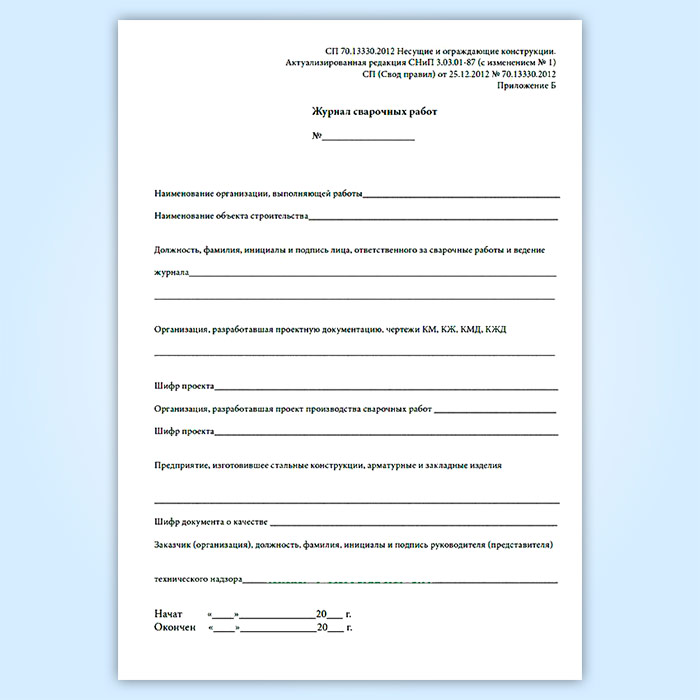 Журнал сварочных работ (приложение к СП 70.13330.2012) в Нижнекамске купить