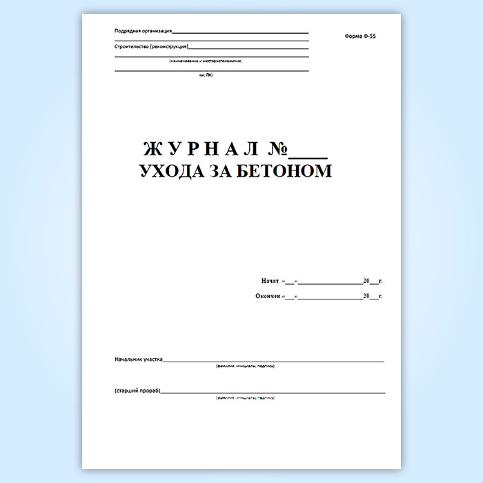 Журнал ухода за бетоном (форма Ф-55) в Нижнекамске купить