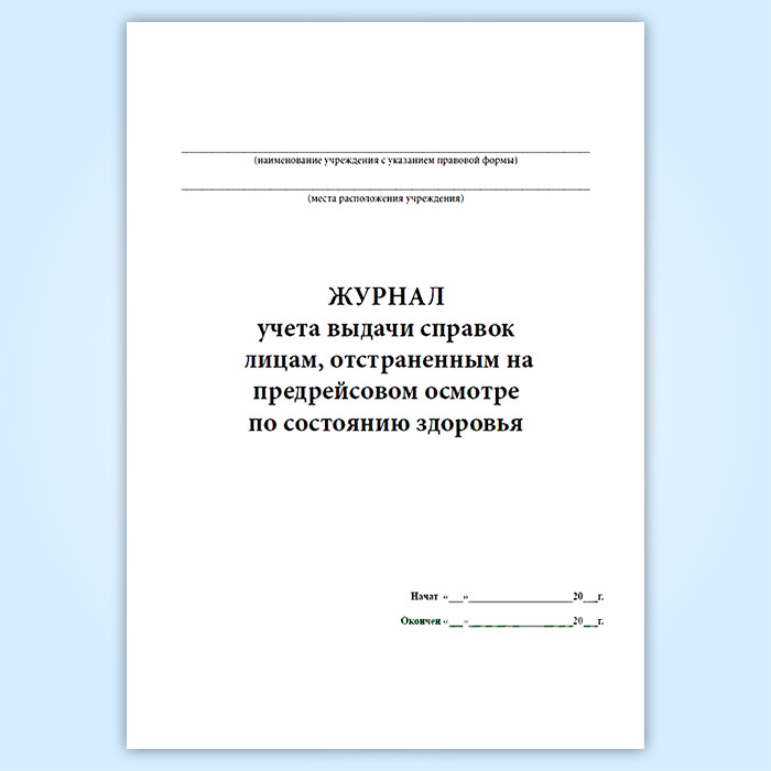 Журнал учета выдачи справок лицам, отстраненным на предрейсовом осмотре по состоянию здоровья в Нижнекамске купить