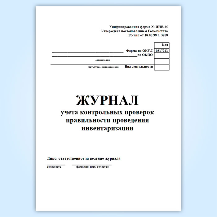 Журнал учета контрольных проверок правильности проведения инвентаризаций (форма ИНВ-25) в Нижнекамске купить