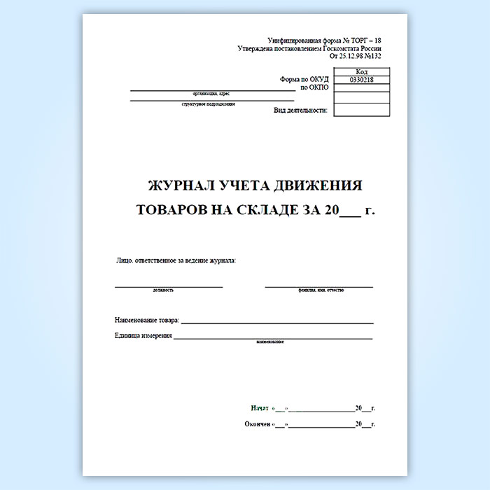 Журнал учета товаров на складе (форма ТОРГ-18) в Нижнекамске купить