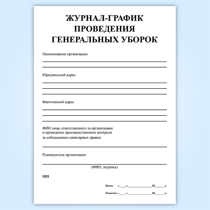 Журнал-график проведения генеральных уборок в Нижнекамске купить