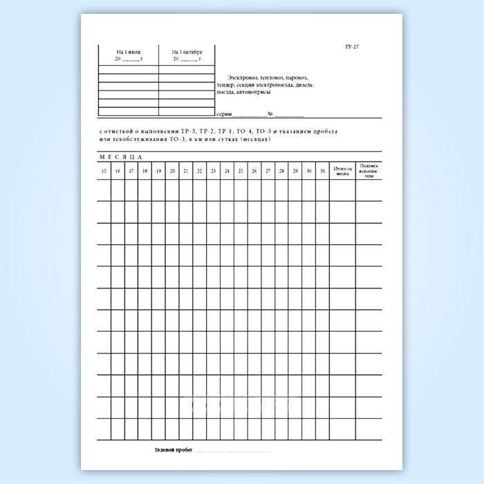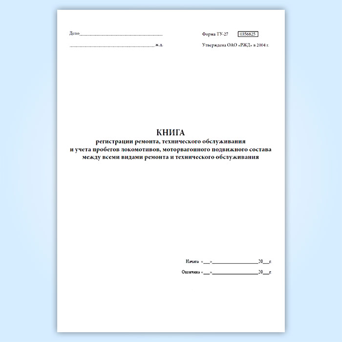 Книга регистрации ремонта, технического обслуживания и учета пробегов локомотивов, моторвагонного подвижного состава между всеми видами ремонта и технического обслуживания (форма ТУ-27) в Нижнекамске купить
