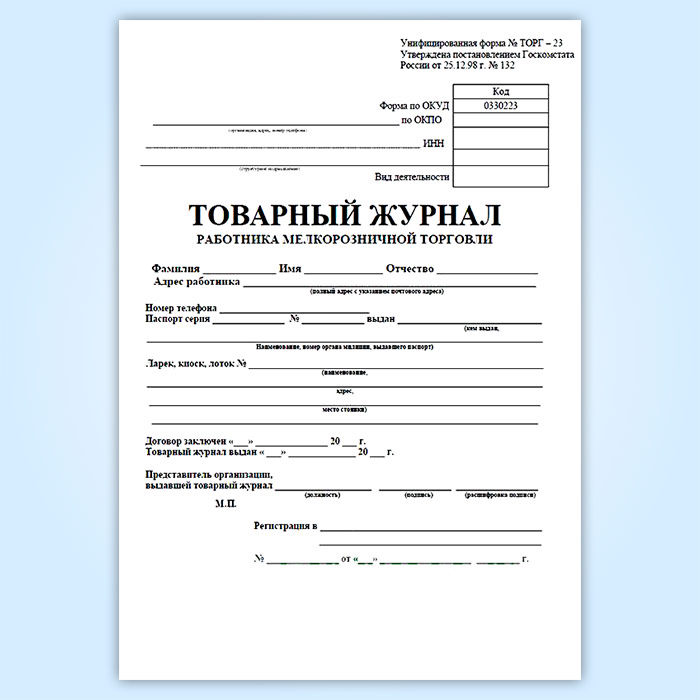 Товарный журнал работника мелкорозничной торговли (форма № ТОРГ-23) в Нижнекамске купить