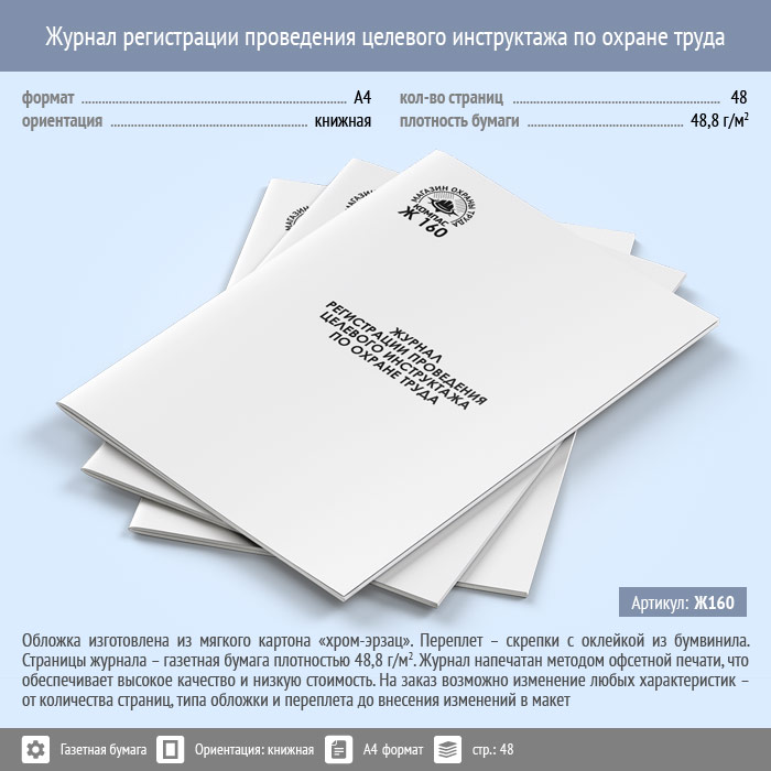 Журнал регистрации проведения целевого инструктажа по охране труда (48 стр., Ж160) в Нижнекамске купить