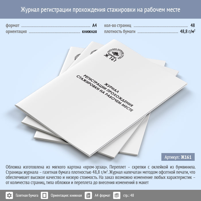 Журнал регистрации прохождения стажировки на рабочем месте (48 стр., Ж161) в Нижнекамске купить