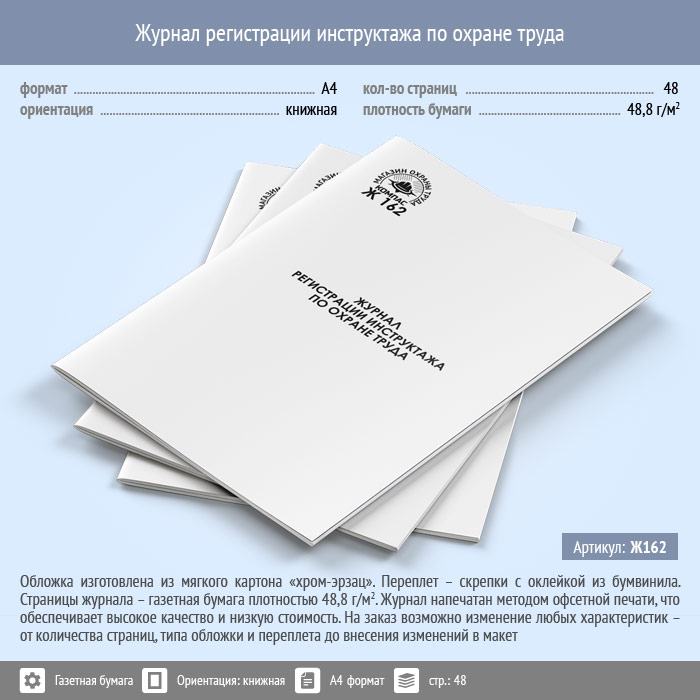 Журнал регистрации инструктажа по охране труда (48 стр., Ж162) в Нижнекамске купить