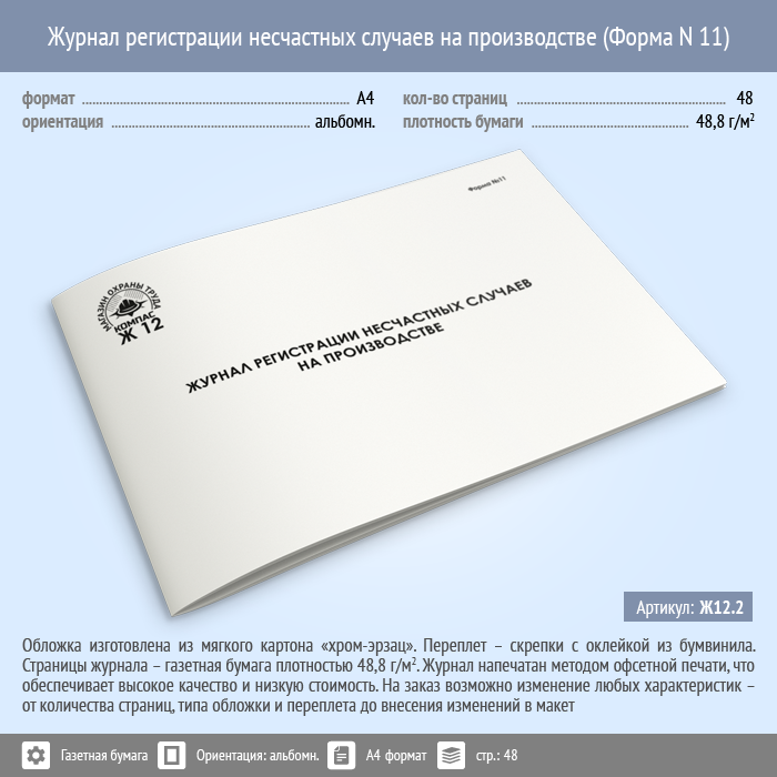 Журнал регистрации несчастных случаев на производстве (Форма N 11) (48 стр., Ж12.2) в Нижнекамске купить