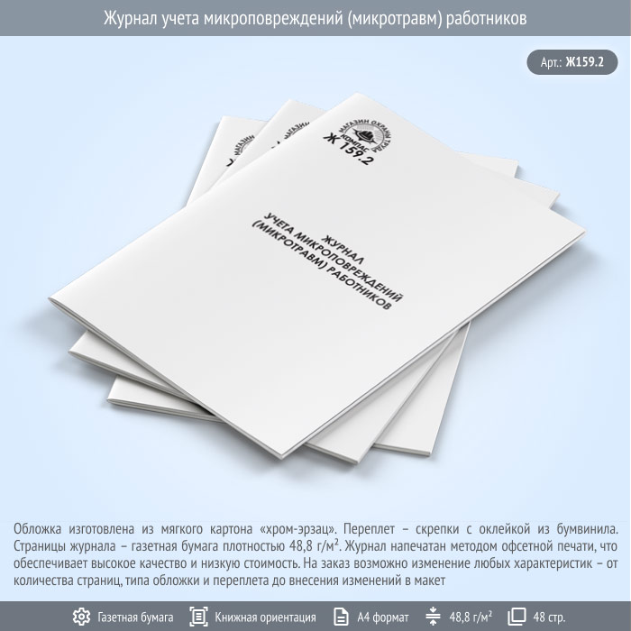 Журнал учета микроповреждений (микротравм) работников (48 стр., Ж159.2) в Нижнекамске купить
