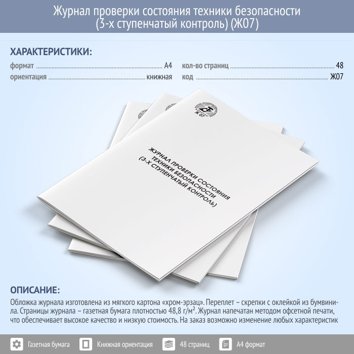 Журнал проверки состояния техники безопасности (3-х ступенчатый контроль, 48 стр., Ж07) в Нижнекамске купить