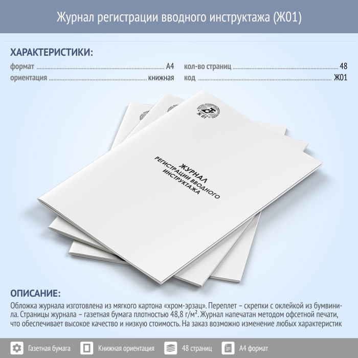 Журнал регистрации вводного инструктажа (48 стр., Ж01) в Нижнекамске купить