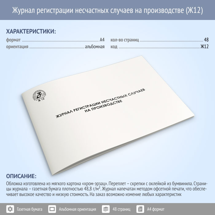 Журнал регистрации несчастных случаев на производстве (48 стр., Ж12) в Нижнекамске купить