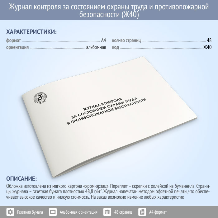 Журнал контроля за состоянием охраны труда и противопожарной безопасности (48 стр., Ж40) в Нижнекамске купить