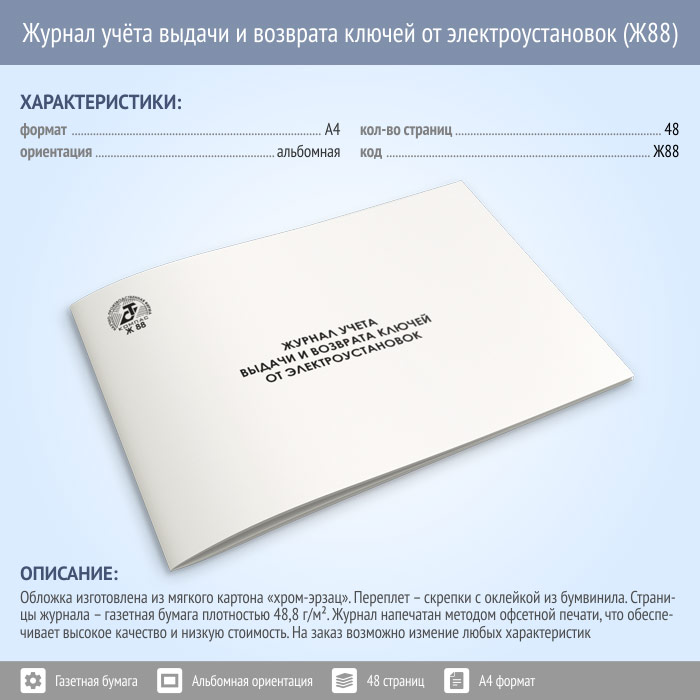 Журнал учета выдачи и возврата ключей от электроустановок (48 стр., Ж88) в Нижнекамске купить