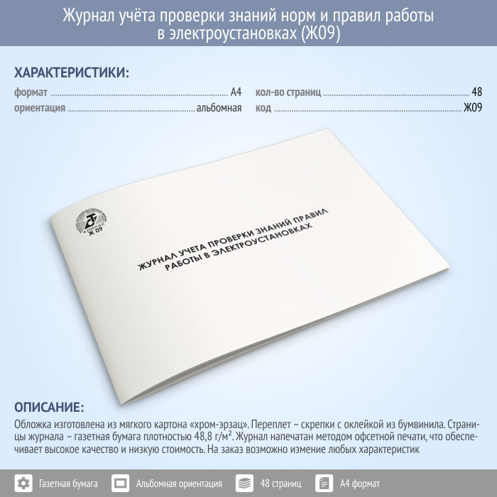 Журнал учета проверки знаний норм и правил работы в электроустановках (48 стр., Ж09) в Нижнекамске купить