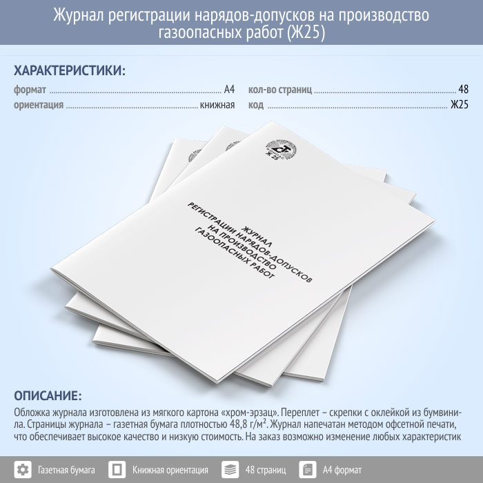 Журнал регистрации нарядов-допусков на производство газоопасных работ (48 стр., Ж25) в Нижнекамске купить