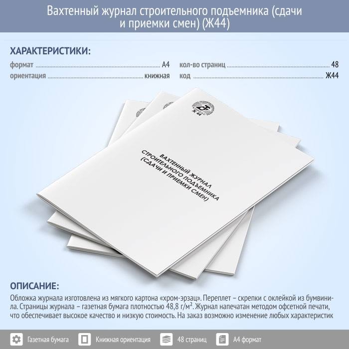 Вахтенный журнал строительного подъемника (сдачи и приемки смен) (48 стр., Ж44) в Нижнекамске купить