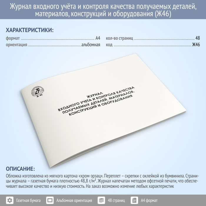 Журнал входного учета и контроля качества получаемых деталей, материалов, конструкций и оборудования (48 стр., Ж46) в Нижнекамске купить