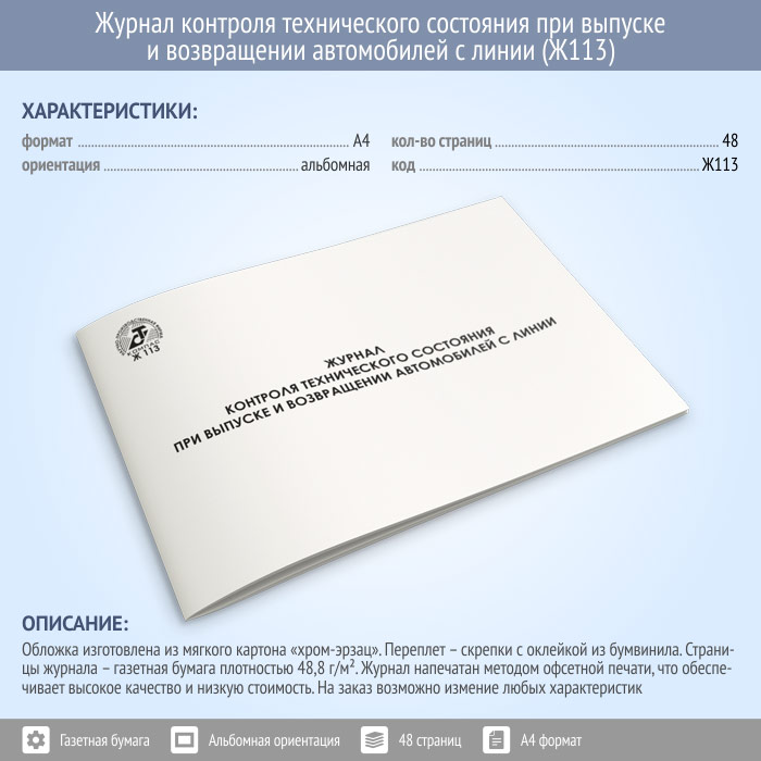 Журнал контроля технического состояния при выпуске и возвращении автомобилей с линии (48 стр., Ж113) в Нижнекамске купить