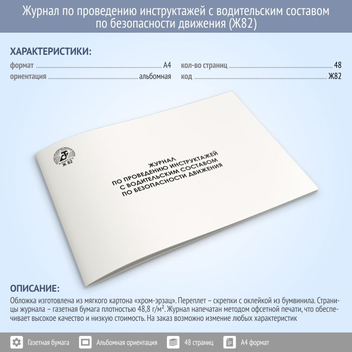 Журнал по проведению инструктажей с водительским составом по безопасности движения (48 стр., Ж82) в Нижнекамске купить
