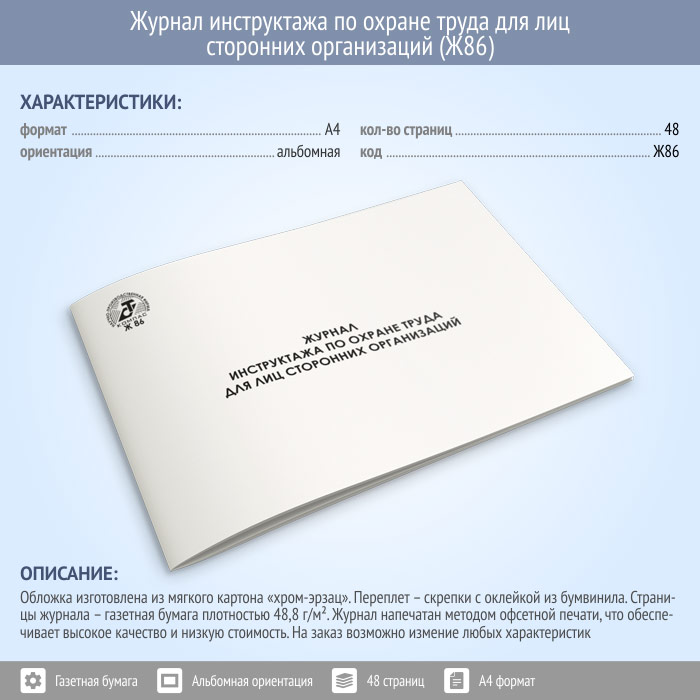 Журнал инструктажа по охране труда для лиц сторонних организаций (48 стр., Ж86) в Нижнекамске купить