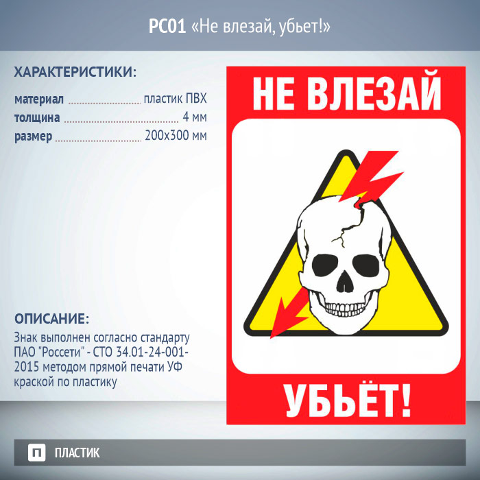 Знак «Не влезай, убьет!», РС01 (пластик 2 мм, 200х300 мм) в Нижнекамске купить