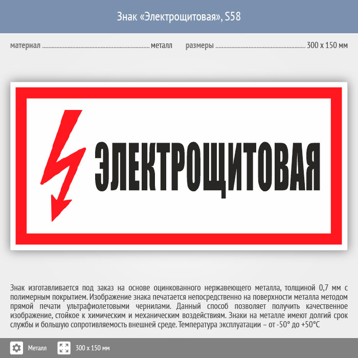 Знак (плакат) «Электрощитовая», S58 (металл, 300х150 мм) в Нижнекамске купить