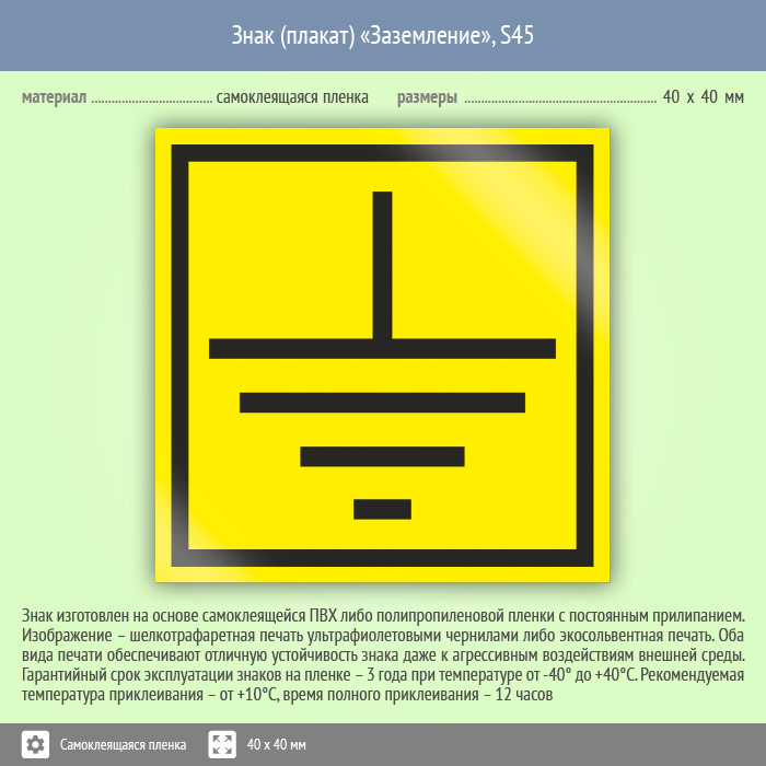 Знак (плакат) «Заземление», S45 (25 штук пленка, 40х40 мм) в Нижнекамске купить