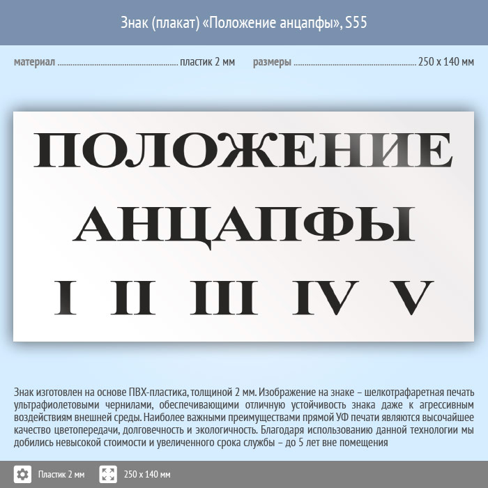 Знак (плакат) «Положение анцапфы», S55 (пластик, 250х140 мм) в Нижнекамске купить