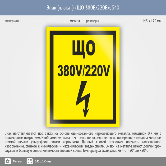 Знак (плакат) «ЩО 380В/220В», S40 (металл, 145х175 мм) в Нижнекамске купить
