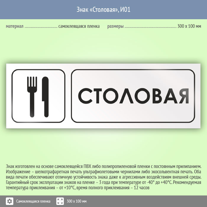 Знак «Столовая», И01 (пленка, 300х100 мм) в Нижнекамске купить