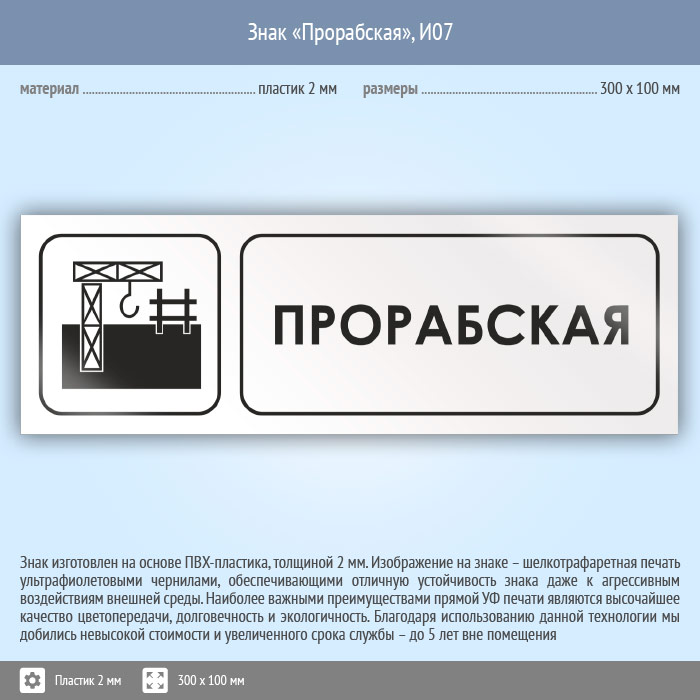 Знак «Прорабская», И07 (пластик, 300х100 мм) в Нижнекамске купить