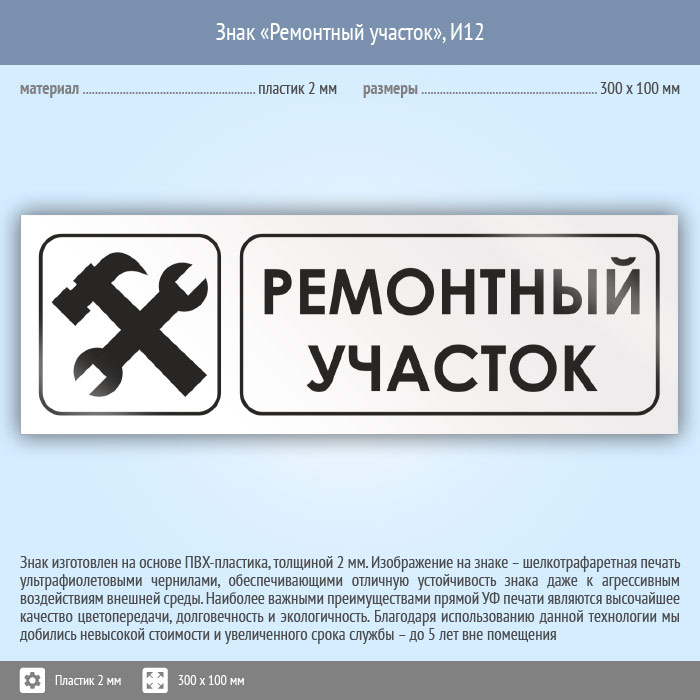 Знак «Ремонтный участок», И12 (пластик, 300х100 мм) в Нижнекамске купить
