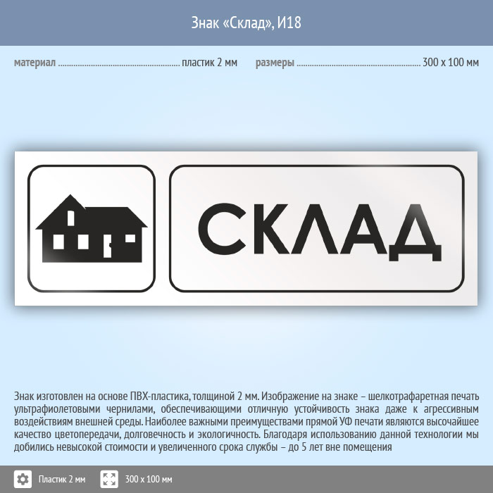 Знак «Склад», И18 (пластик, 300х100 мм) в Нижнекамске купить