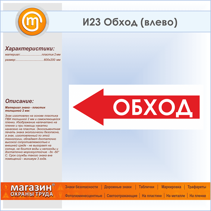 Знак «Обход (влево)», И23 (пластик, 600х200 мм) в Нижнекамске купить