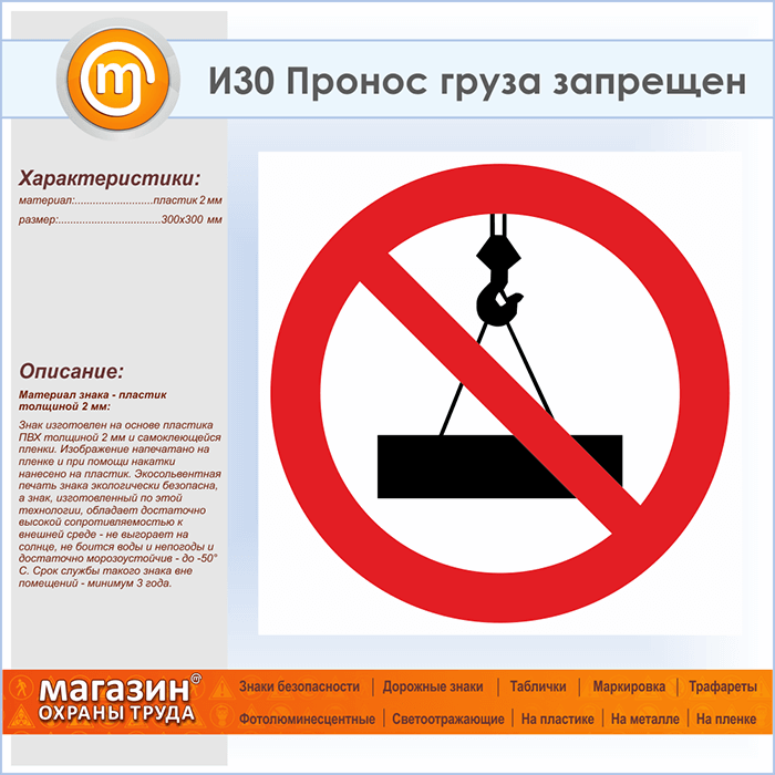 Знак «Пронос груза запрещен», И30 (пластик, 300х300 мм) в Нижнекамске купить