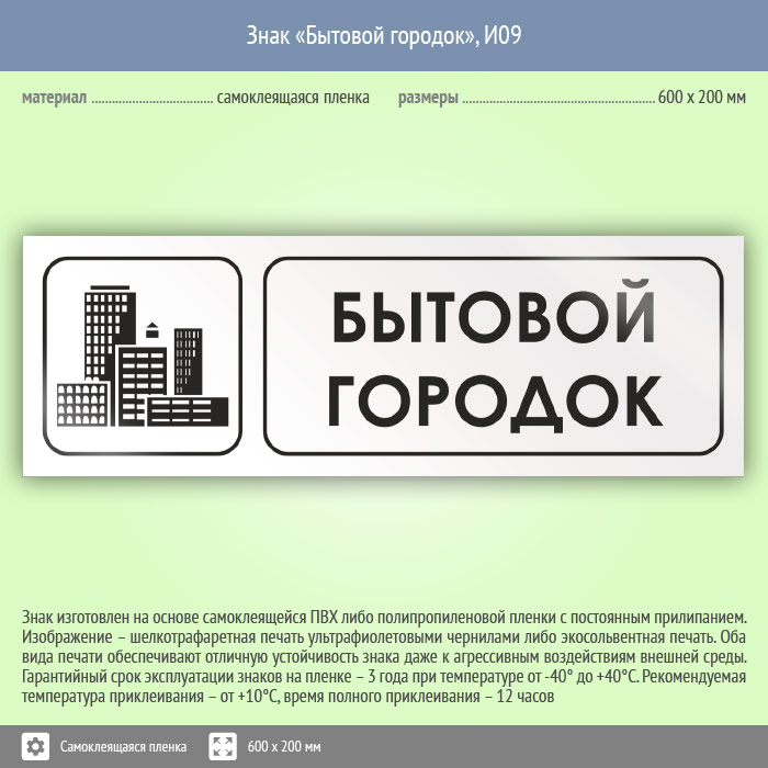 Знак «Бытовой городок», И09 (пленка, 600х200 мм) в Нижнекамске купить