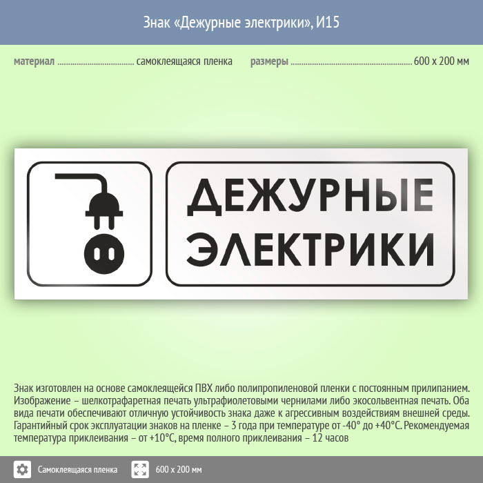 Знак «Дежурные электрики», И15 (пленка, 600х200 мм) в Нижнекамске купить