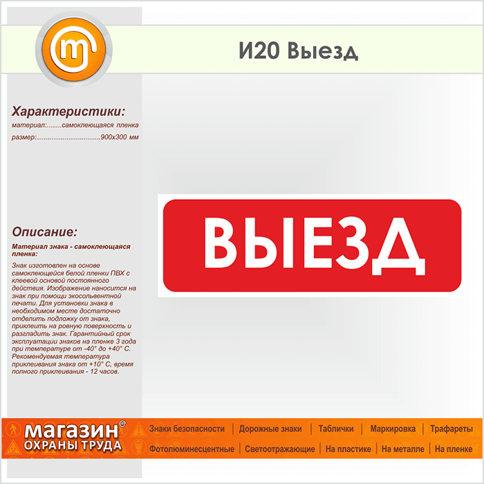 Знак «Выезд», И20 (пленка, 900х300 мм) в Нижнекамске купить