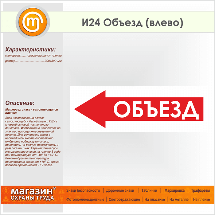 Знак «Объезд (влево)», И24 (пленка, 900х300 мм) в Нижнекамске купить