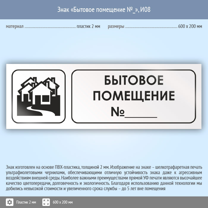 Знак «Бытовое помещение №_», И08 (пластик, 600х200 мм) в Нижнекамске купить
