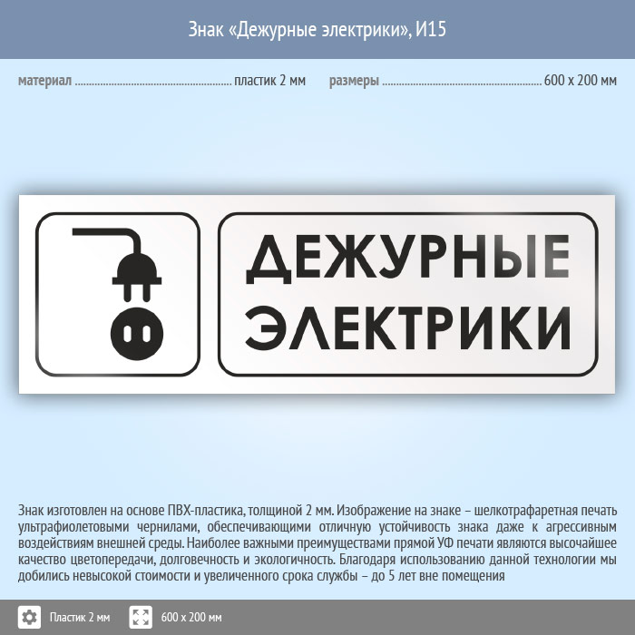 Знак «Дежурные электрики», И15 (пластик, 600х200 мм) в Нижнекамске купить