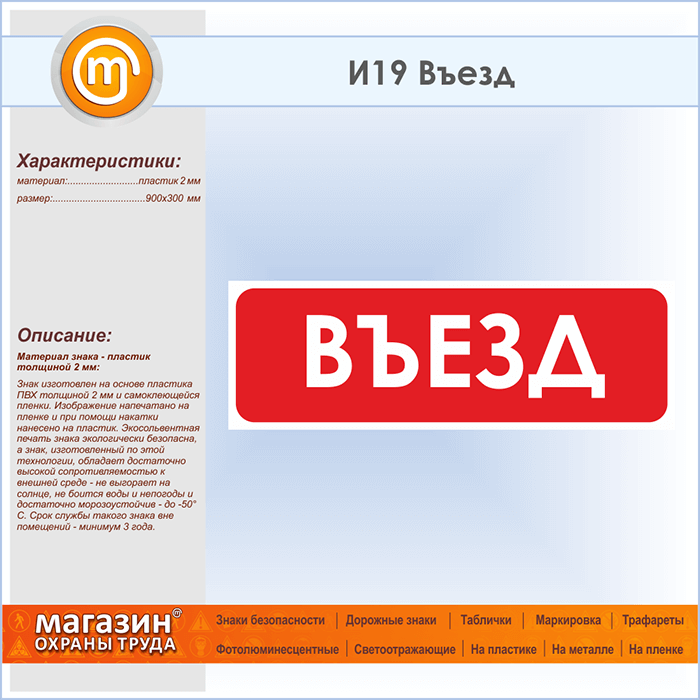 Знак «Въезд», И19 (пластик, 900х300 мм) в Нижнекамске купить